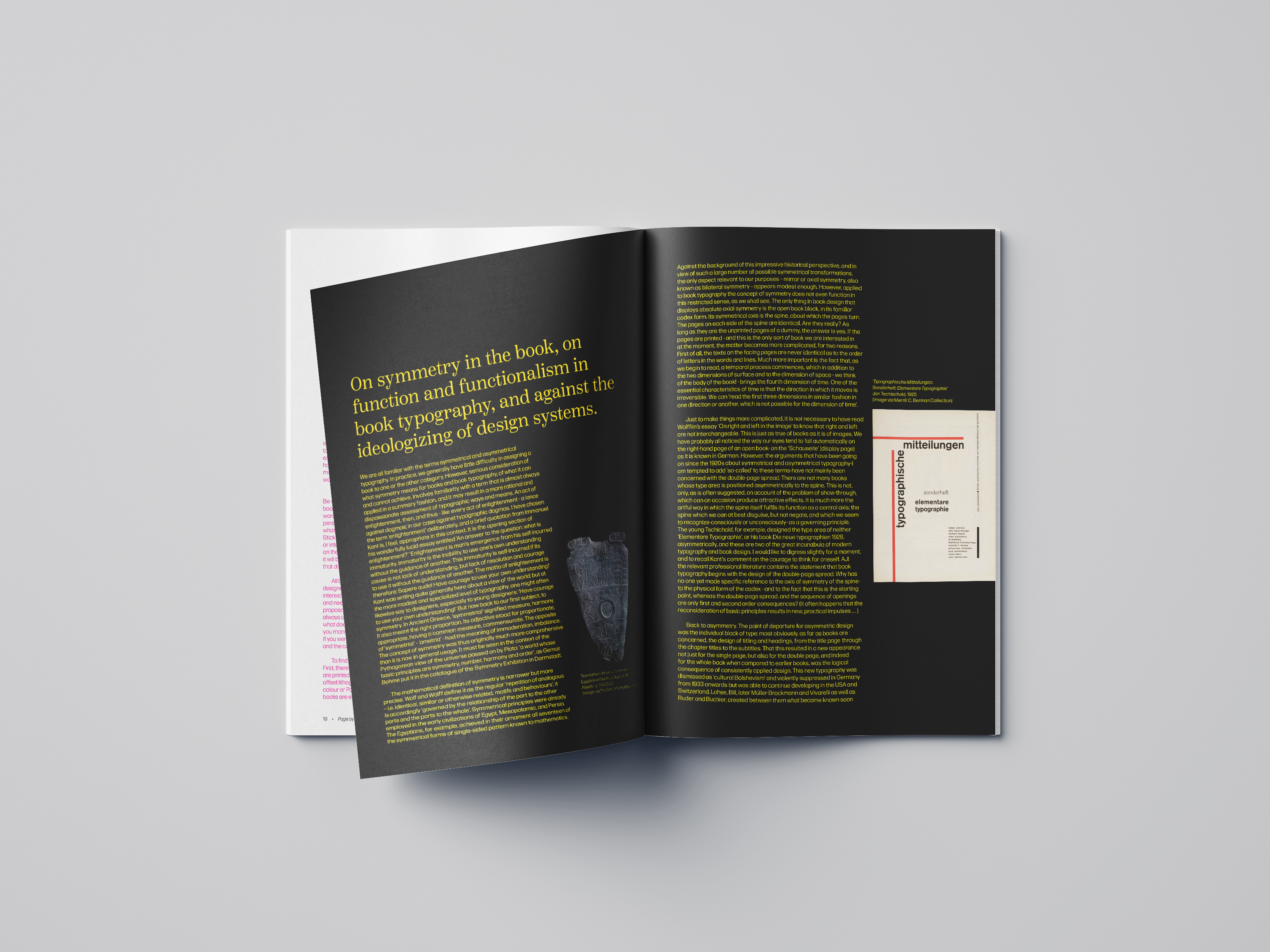 I chose to approach this project as if it were an special issue in an ongoing publication focusing on book design. The title, ‘Page by Page’, was intended to express how publications are typically designed from the cover right down to the individual page. The colour scheme consisted simply of cyan, yellow, magenta and black to represent the colours of inks used in printing.